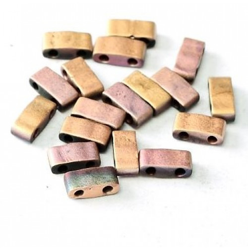 A 5 gram pack of Miyuki 2 hole 2.5 mm x 5mm x 1.9 mm Half Tila glass beads with 2 parallel 0.8 mm holes