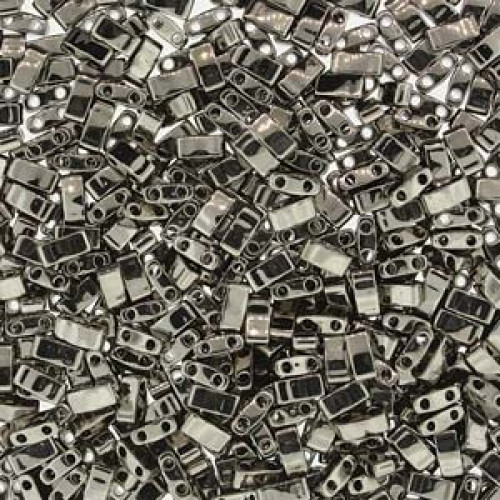 A 5 gram pack of Miyuki 2 hole 2.5 mm x 5mm x 1.9 mm Half Tila glass beads with 2 parallel 0.8 mm holes