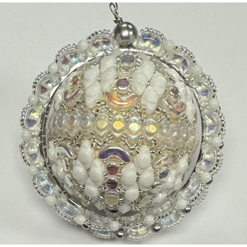 The Boule de Noel is made with a selection of Perles par Puca together with bicones, round beads and size 11 and 15 seed beads, all beaded around a 40mm wooden bead, with the addition of a beaded ring around the outside which could be a separate decoration if you prefer This pack contains all the beads you need to create a Boule Noel in white and silver, including the ring and wire for assembling the finished piece All you need to supply is the needle and thread