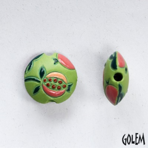 Golem Pomegranates on Light Green Lentil Beads