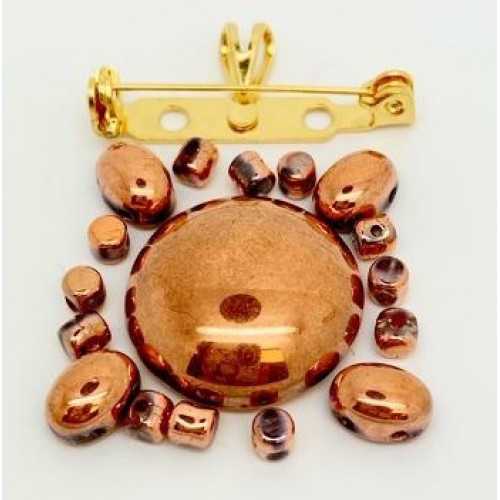 This pack contains the 18mm Cabochon, Samos and Minos par Puca to create a Sati motif. We have also included a combined brooch bar and bail in Gold Plate finish to enable the piece to be used as either a brooch or pendant. You will need to add Delicas, size 8, 11 and 15 seed beads to personalise and complete the project. Please add a (free) copy of the Sati pattern to your basket if you don't already have it