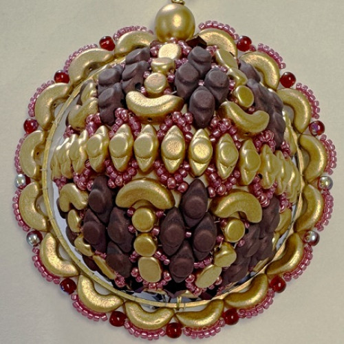 The Boule de Noel is made with a selection of Perles par Puca together with bicones, round beads and size 11 and 15 seed beads, all beaded around a 40mm wooden bead, with the addition of a beaded ring around the outside which could be a separate decoration if you prefer This pack contains all the beads you need to create a Boule Noel in purple and silver, including the ring and wire for assembling the finished piece All you need to supply is the needle and thread