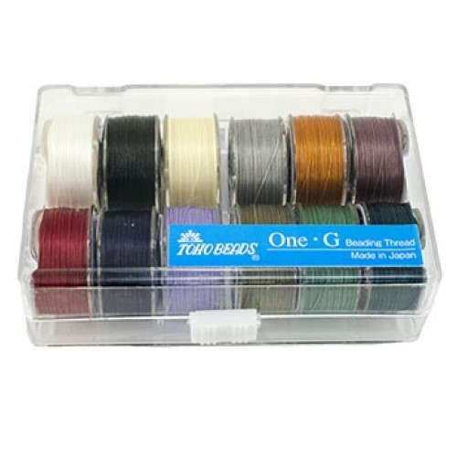 TOHO One-G nylon beading thread is a tangle-free, fray-resistant nylon thread from TOHO that's suitable for all of your beadweaving projects. The 12 pack selection comes in a lovely, re-usable case