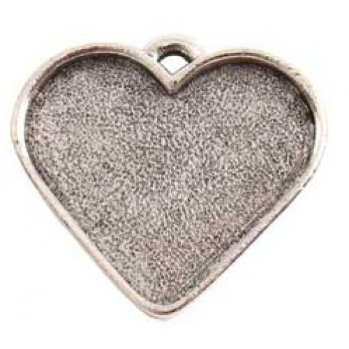 32 x 27 mm Antique Silver heart with a recess of approx 3.5 mm and a hanging loop