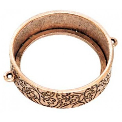 Approx 8mm deep, 20.5mm wide etched copper ring with a 2mm lip and 2 x 3mm loops