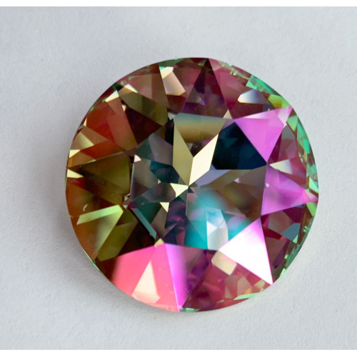 Photographs cannot capture the beautiful colours in this pointed back Swarovski Rivoli. Please be aware that this piece has no hole